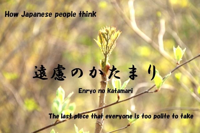 この譲り合いの感覚はこの文化の中で育っていない人には理解し難いものです。ただこういう考え方をしているのだな、知るとストレスは減ります。それを知ると日本人が日常生活で遠慮をしているのに気づきます。ああやってるなと思えばなんとなく感覚が分かってくるでしょう。食事に行って最後の一個に遭遇する機会があれば「遠慮のかたまりがあるね」と言って見てください。最後の一個が食べる権利とみんなを笑いを獲得できます。
