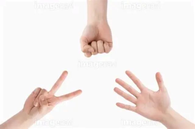 「ジャンケン」は英語で「Rock Paper Scissors」と言われるゲームです。手で作った、石(グー)と鋏(チョキ)と紙(パー)で勝敗を決めます。グー(石)は握りこぶし、チョキ(ハサミ)は人差し指と中指の二本を立て、パー(紙)は手を開きます。グーはチョキーより強く、チョキはパーより強く、パーはグーより強いのです。それぞれに勝てない相手がいる三すくみの関係です。
